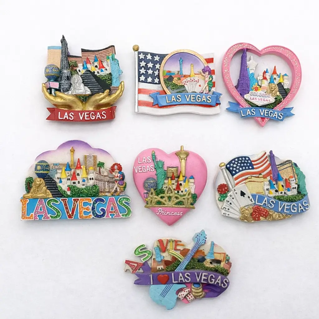 Custom 3D resin and ceramic fridge magnets with landmarks, symbols, and attractions.
